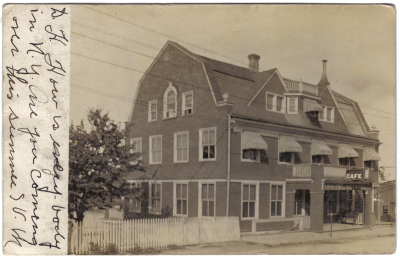"This is the new hotel across the street from the School House, will let you stop there when you come up. Verna M." Addressed to Miss Hazel Putt 1017 Trinity Ave. New York City. N.Y. Postmarked Wormleysburg, PA MAR 4 AM 1908 |